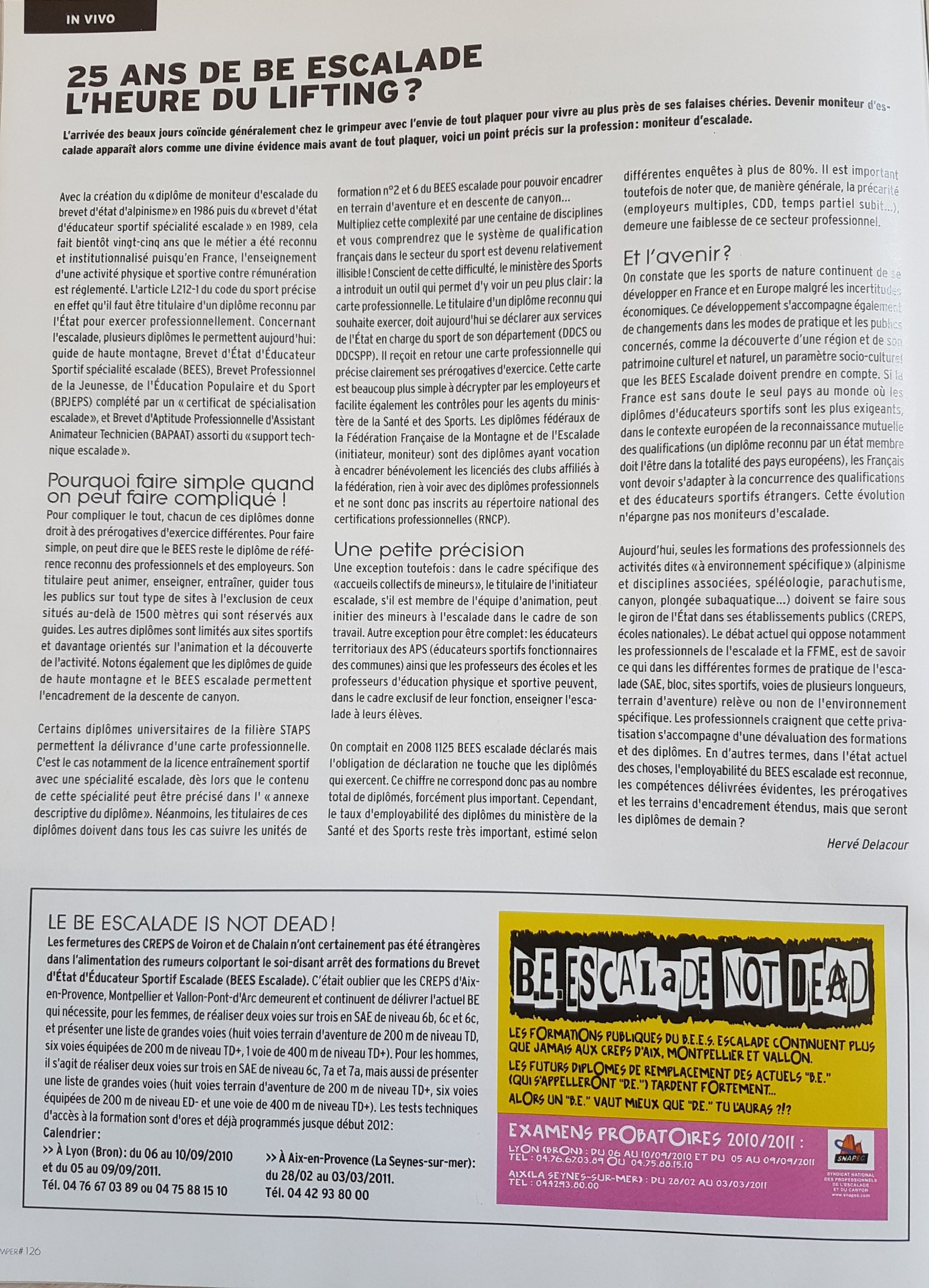 25 ans de BE escalade - Grimper N° 126 juin 2010